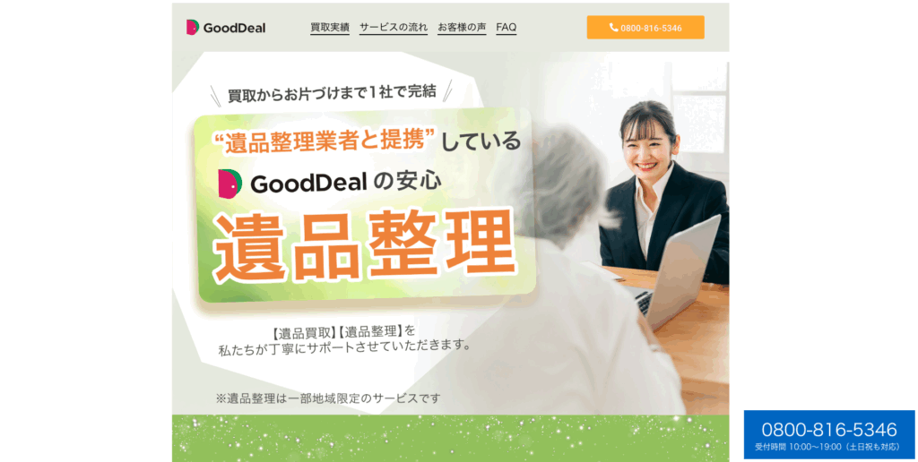 遺品整理業者と提携しており、「遺品買取・遺品整理」をセットで利用することが可能です。
