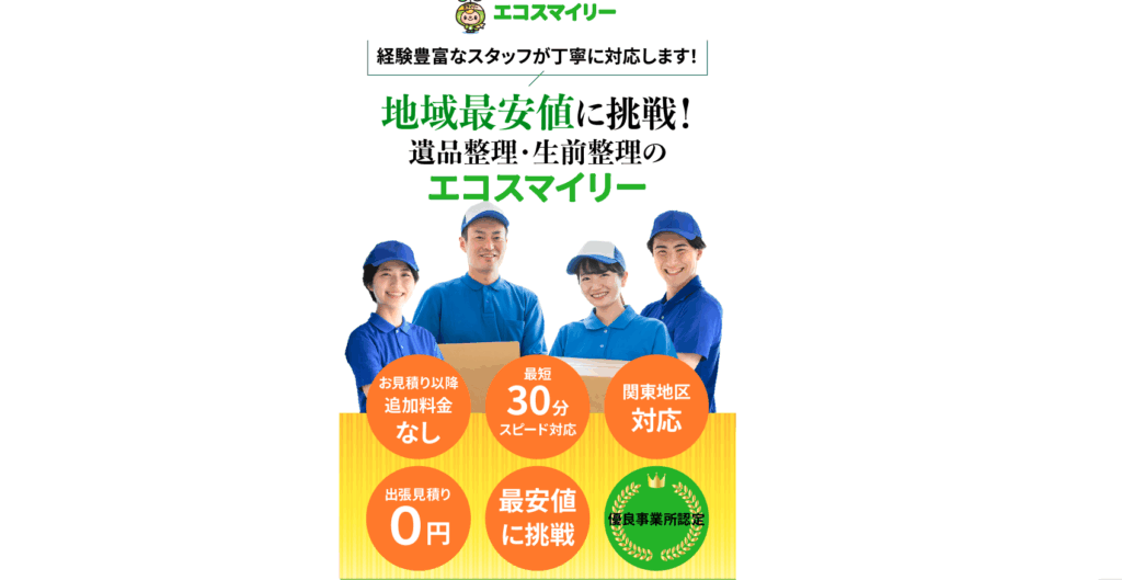 エコスマイリーは、遺品整理・生前整理に地域密着型で対応している業者です。