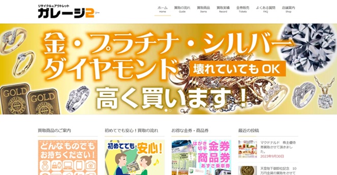 ガレージ2はブランド品や貴金属をはじめ、幅広いジャンルの品物を買取しているお店です。