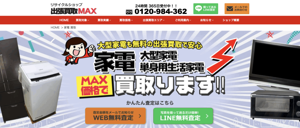 買取マクサスは、出張買取を中心としつつ、宅配・店頭買取にも対応している総合リユースショップです。