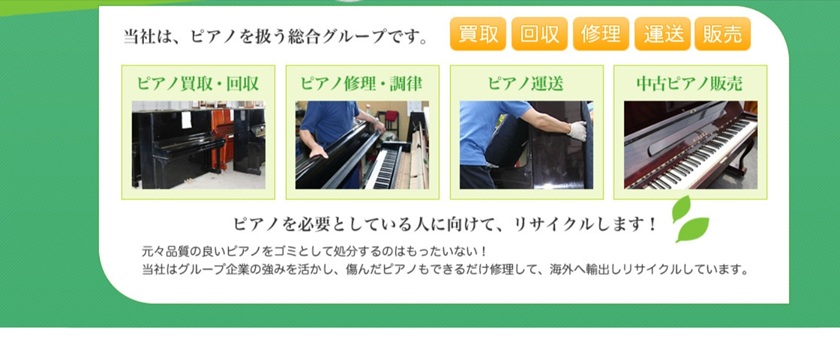 ピアノリサイクルシステムは、ピアノの買取・回収・修理・運送・販売を行っている会社です。