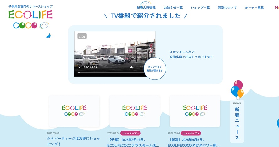 エコライフココは、ママの笑顔と子どもの未来をつくる地域貢献型リユースショップです。