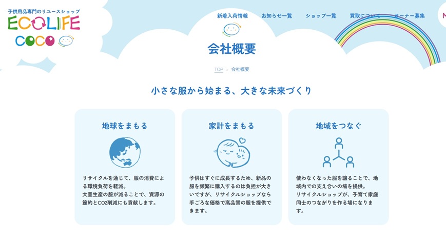 引用元:会社概要 | 子供服リサイクル ECOLIFE COCO(エコライフココ)