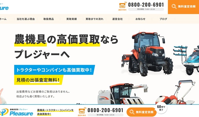 総評:農機具買取プレジャーは農機具の買取に特化しています。